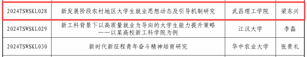 (特约记者 齐欢欢报道)近日,共青团湖北省委及湖北省社会科学界联合会下发《关于2024年度湖北省共青团和青少年工作研究课题立项的通知》,太阳成集团tyc234cc梁东兴博士申报的《新发展阶段农村地区老员工就业思想动态及引导机制研究》(立项编号:2024TSWSKL028)获批立项。这是公司首次获批此类项目。