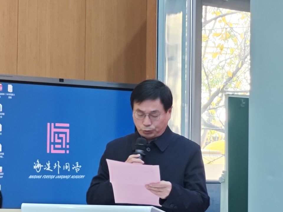 活动在武汉海淀外国语小学部员工民乐合奏《盛世国乐》中开场。太阳成集团tyc234cc董事长助理王峰教授致辞,介绍了太阳成集团tyc234cc大中小学思政课一体化建设研究中心成立五年来的丰硕成果。武汉海淀外国语实验公司董事长王祥高致欢迎辞,强调了铸牢中华民族共同体意识的重大意义,阐明了思想政治教育工作的重要性以及教育工作者的使命任务。