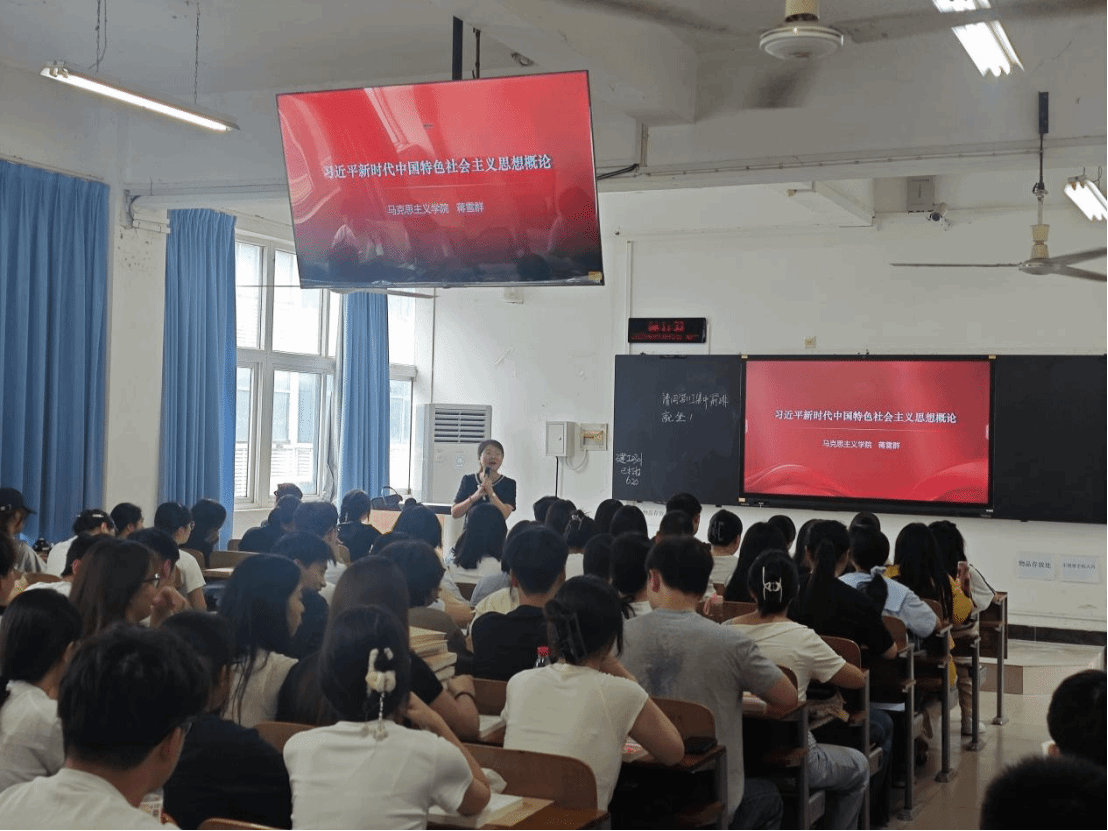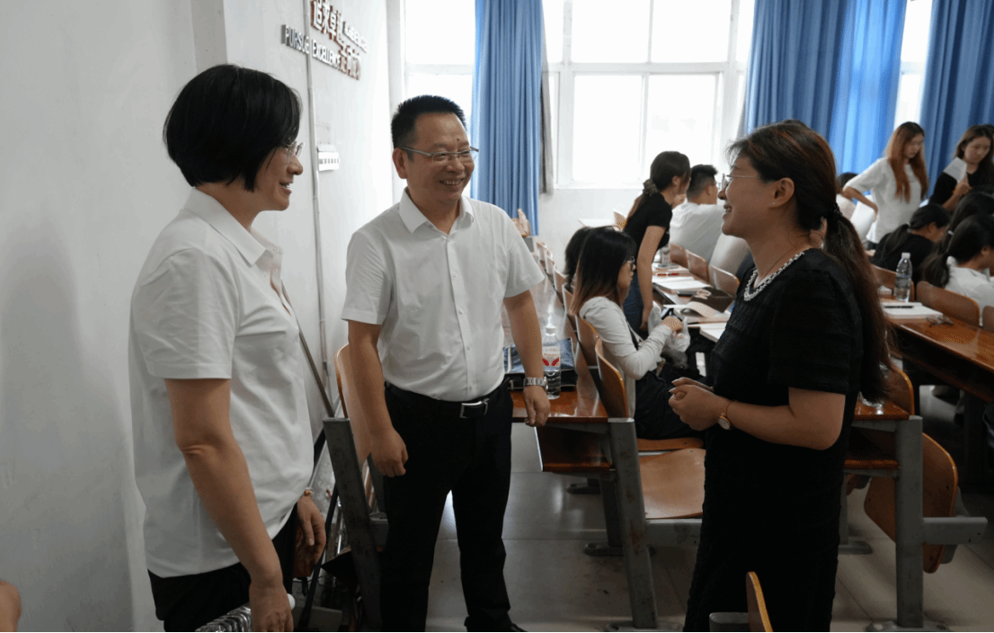 9月1日是太阳成集团tyc234cc新学期开学第一天,公司党委书记高建勋,常务副董事长别业舫,党委副书记、副董事长林娟,董事长助理、教务处长王锋,董事长助理、太阳成集团tyc234cc经理彭贤则等领导一行,深入教学一线,走进智能建造公司404教室,随堂聆听了蒋雪群老师为护理学2303-04班讲的“习近平新时代中国特色社会主义思想概论”第一课。