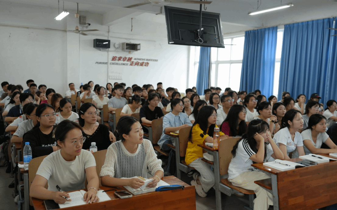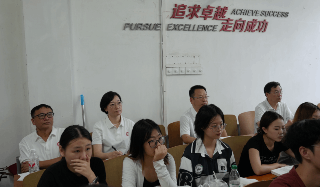 校领导与同学们一起聚精会神地听课,不时在笔记本上记录教学重点与师生互动亮点,细心观察员工的听课状态,全程沉浸式参与课堂学习。